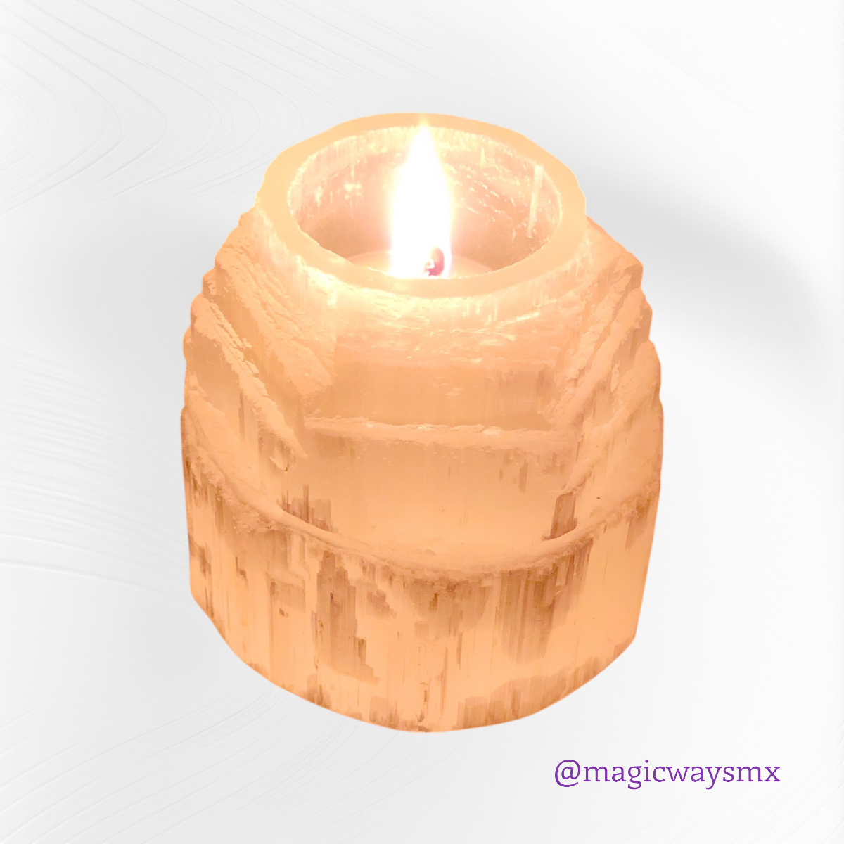 Torre de Selenita con Vela para el Desarrollo Espiritual
